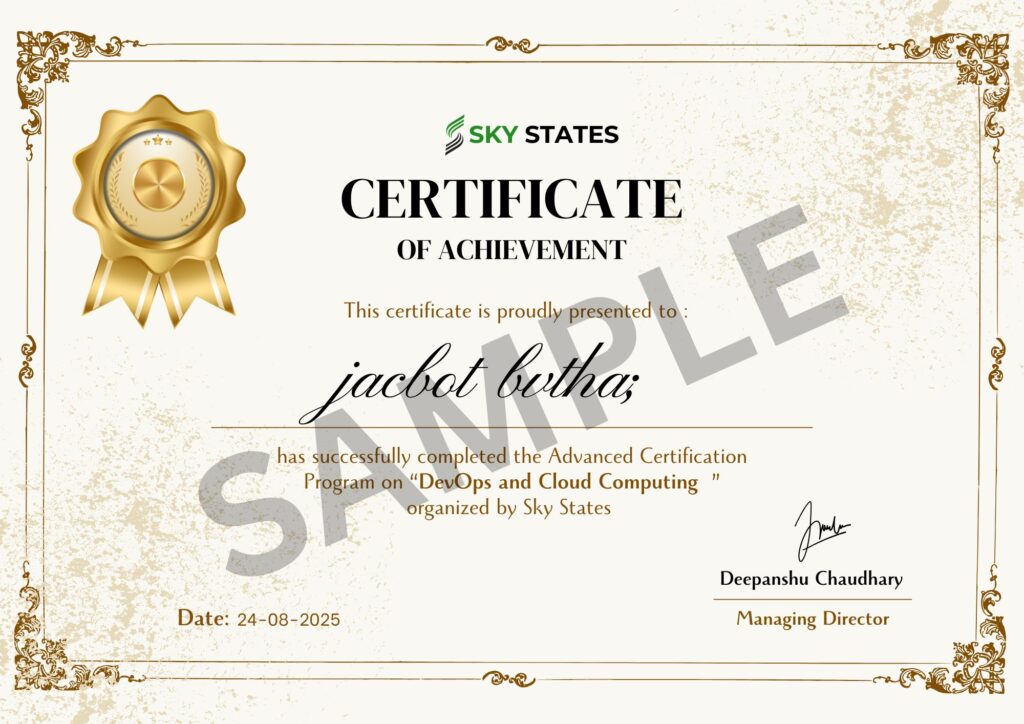 - Industry-recognized advanced DevOps and Cloud Computing certificate from Shef USA
